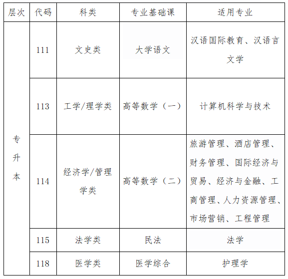 海南省专成人升本专业基础课严格按学科门类划分,考生需根据报考专业选择对应科目。